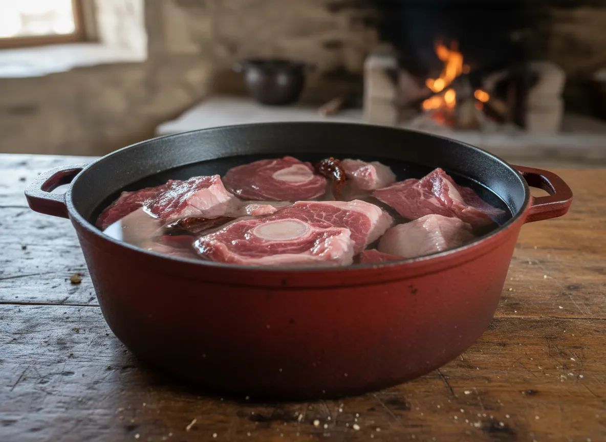 In a pot, add 10 cups of water with 4Ib of beef, pork or chicken.