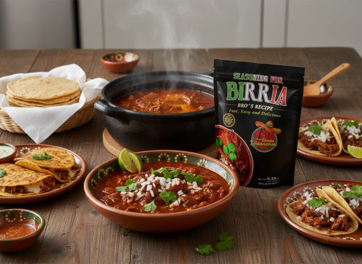 Artisanal Tijuana birria seasoning crafted for busy professionals. Serve a premium, slow-simmered flavor in a fraction of the time.